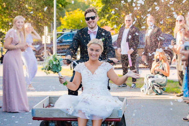 Vi fick in många delar i bröllopet som speglar oss, magisk vigsel, åka båt, åka flakmoped till festlokalen och sedan en grym bröllopsfest.